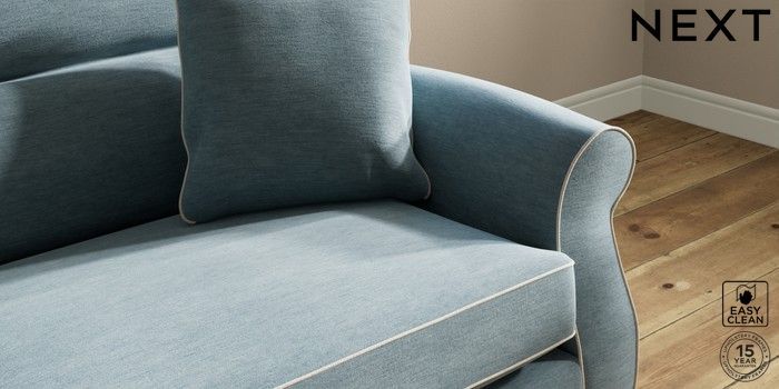 7.3.1 Buy Ashford Highback 4 Seater Sofa Fine Chenille with Contrast Mid Blue and Oyster Modern Turned Metal Cap - Mid from the Next UK online shop Click here to use our accessible website