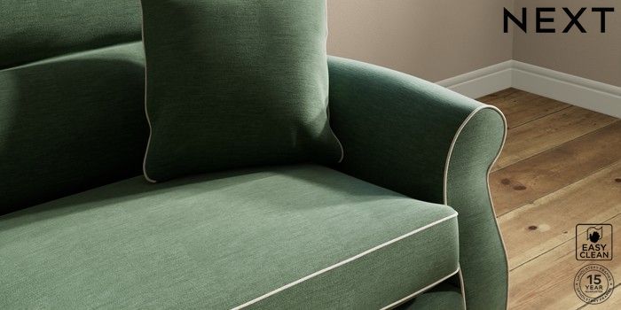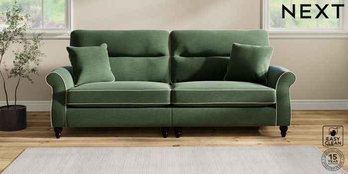 7.3.1 Buy Ashford Highback 4 Seater Sofa Fine Chenille with Contrast Mid Khaki Green and Oyster Low Turned - Dark from the Next UK online shop Click here to use our accessible website