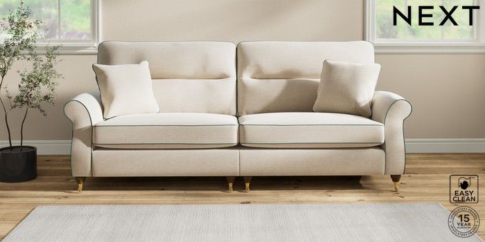 7.3.1 Buy Ashford Highback 4 Seater Sofa Fine Chenille with Contrast Oyster and Dark Juniper Green Castor - Mid from the Next UK online shop Click here to use our accessible website