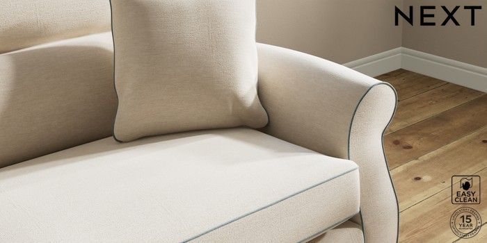 7.3.1 Buy Ashford Highback 4 Seater Sofa Fine Chenille with Contrast Oyster and Mid Blue Castor - Dark from the Next UK online shop Click here to use our accessible website