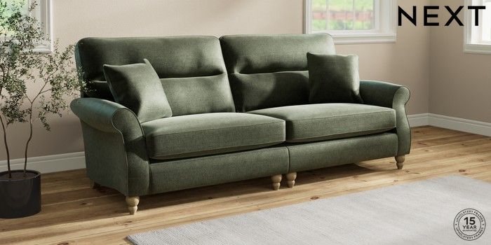 6.12.1 Buy Ashford Highback 4 Seater Sofa Luxe Chenille Mid Green Low Turned - Light from the Next UK online shop Click here to use our accessible website