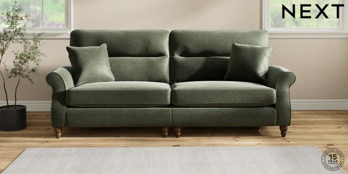 6.12.1 Buy Ashford Highback 4 Seater Sofa Luxe Chenille Mid Green Low Turned - Mid from the Next UK online shop Click here to use our accessible website