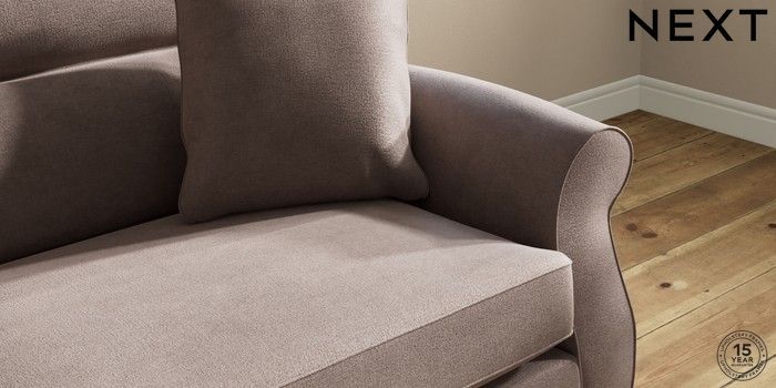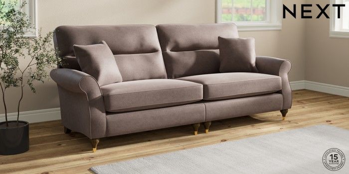 6.12.1 Buy Ashford Highback 4 Seater Sofa Luxe Chenille Mink Brown Modern Turned Metal Cap - Mid from the Next UK online shop Click here to use our accessible website