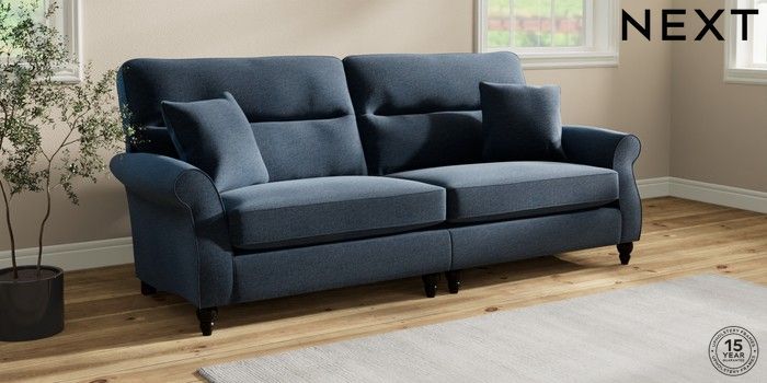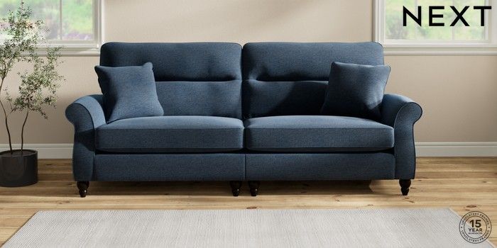 6.12.1 Buy Ashford Highback 4 Seater Sofa Ripple Chenille Dark Blue Low Turned - Dark from the Next UK online shop Click here to use our accessible website