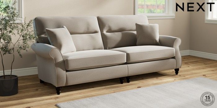 6.12.1 Buy Ashford Highback 4 Seater Sofa Ripple Chenille Light Natural Low Turned - Dark from the Next UK online shop Click here to use our accessible website