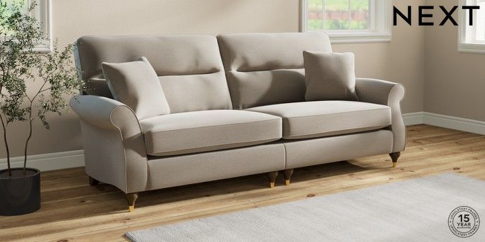 6.12.1 Buy Ashford Highback 4 Seater Sofa Ripple Chenille Light Natural Modern Turned Metal Cap - Mid from the Next UK online shop Click here to use our accessible website