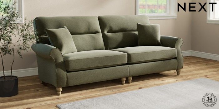 6.12.1 Buy Ashford Highback 4 Seater Sofa Ripple Chenille Mid Moss Green Low Turned - Light from the Next UK online shop Click here to use our accessible website