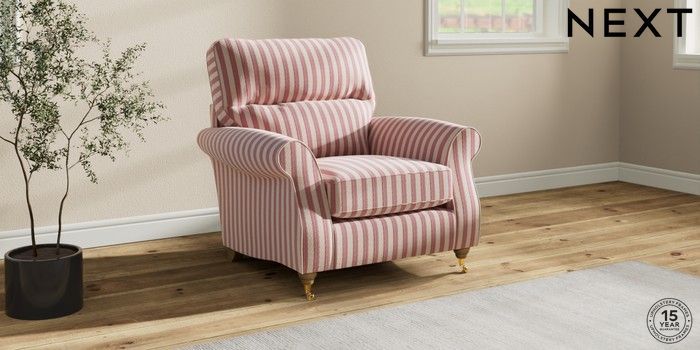 7.3.1 Buy Ashford Highback Armchair Bold Chenille Stripe Dark Pink Castor - Light from the Next UK online shop