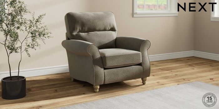 6.12.1 Buy Ashford Highback Armchair Chunky Marl Light Olive Green Low Turned - Light from the Next UK online shop Click here to use our accessible website