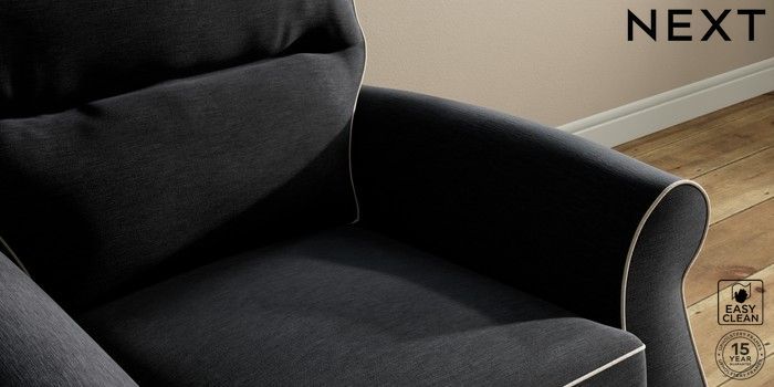 7.3.1 Buy Ashford Highback Armchair Fine Chenille with Contrast Black and Oyster Low Turned - Light from the Next UK online shop Click here to use our accessible website