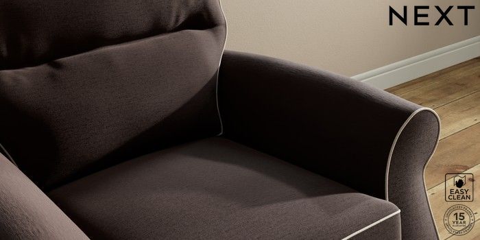 7.3.1 Buy Ashford Highback Armchair Fine Chenille with Contrast Chocolate Brown and Oyster Modern Turned Metal Cap - Mid from the Next UK online shop Click here to use our accessible website