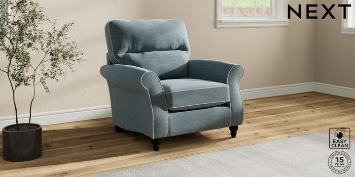 7.3.1 Buy Ashford Highback Armchair Fine Chenille with Contrast Mid Blue and Oyster Low Turned - Dark from the Next UK online shop Click here to use our accessible website