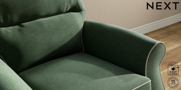 7.3.1 Buy Ashford Highback Armchair Fine Chenille with Contrast Mid Khaki Green and Oyster Low Turned - Light from the Next UK online shop Click here to use our accessible website