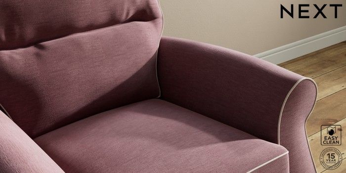 7.3.1 Buy Ashford Highback Armchair Fine Chenille with Contrast Mid Mulberry Purple and Oyster Modern Turned Metal Cap - Mid from the Next UK online shop