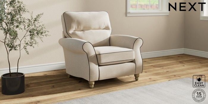 7.3.1 Buy Ashford Highback Armchair Fine Chenille with Contrast Oyster and Black Low Turned - Light from the Next UK online shop Click here to use our accessible website