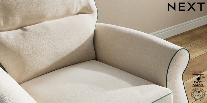 7.3.1 Buy Ashford Highback Armchair Fine Chenille with Contrast Oyster and Dark Juniper Green Low Turned - Mid from the Next UK online shop Click here to use our accessible website