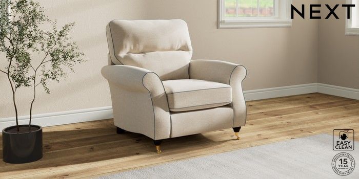 7.3.1 Buy Ashford Highback Armchair Fine Chenille with Contrast Oyster and Mid Blue Castor - Dark from the Next UK online shop Click here to use our accessible website