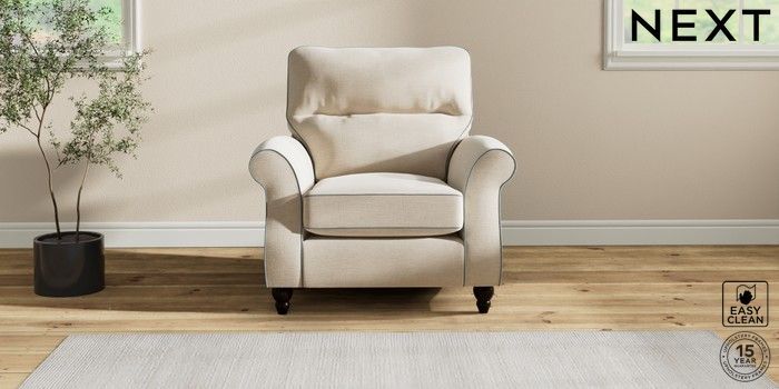 7.3.1 Buy Ashford Highback Armchair Fine Chenille with Contrast Oyster and Mid Blue Low Turned - Dark from the Next UK online shop Click here to use our accessible website