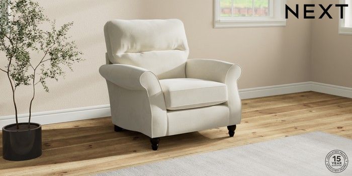 7.0.3 Buy Ashford Highback Armchair Luxe Chenille Oyster Low Turned - Dark from the Next UK online shop Click here to use our accessible website