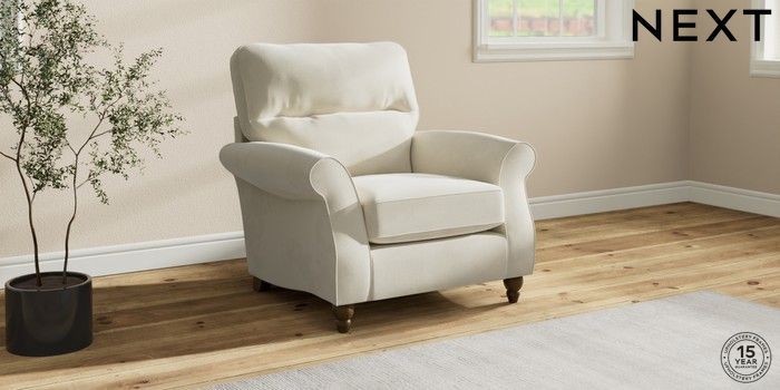 7.0.3 Buy Ashford Highback Armchair Luxe Chenille Oyster Low Turned - Mid from the Next UK online shop Click here to use our accessible website