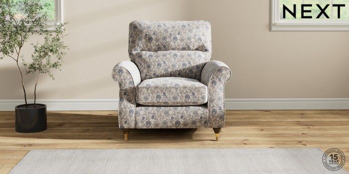 7.3.1 Buy Ashford Highback Armchair Relaxed Linen Look Print Woodblock Floral Blue Castor - Mid from the Next UK online shop Click here to use our accessible website