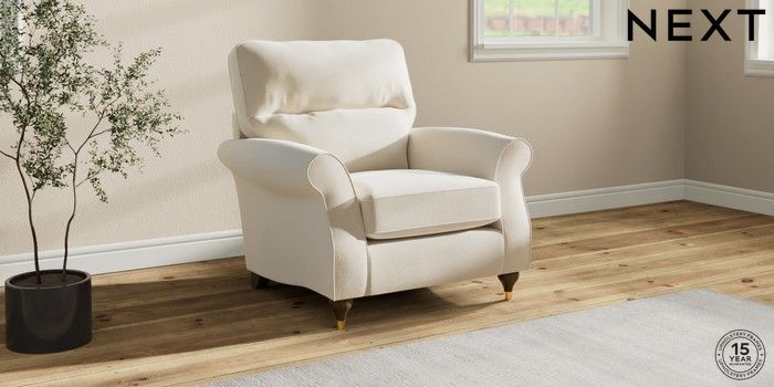 6.12.1 Buy Ashford Highback Armchair Ripple Chenille Oyster Modern Turned Metal Cap - Mid from the Next UK online shop Click here to use our accessible website