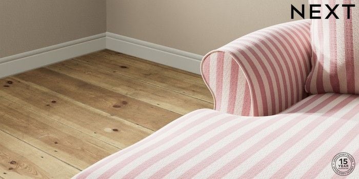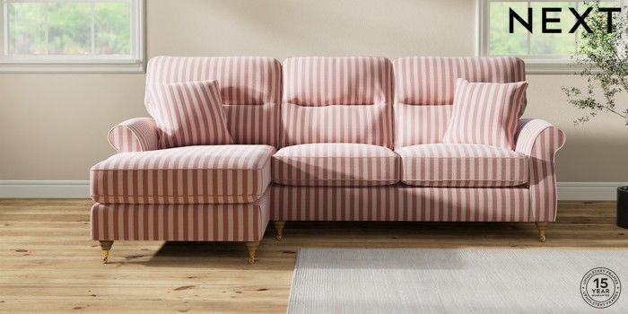 7.3.1 Buy Ashford Highback Medium Sofa Chaise - Left Hand Bold Chenille Stripe Dark Pink Castor - Light from the Next UK online shop