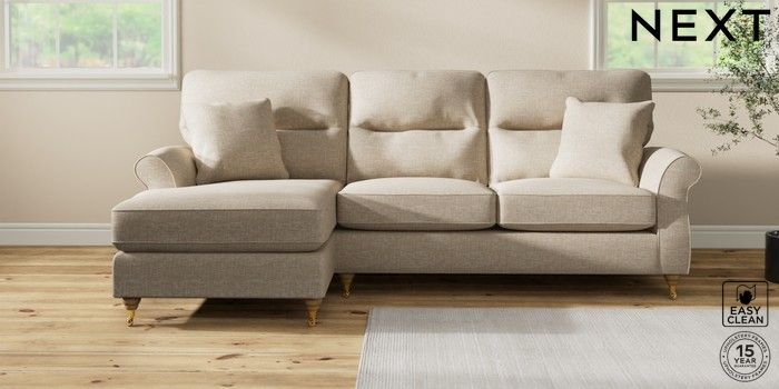 6.12.1 Buy Ashford Highback Medium Sofa Chaise - Left Hand Boucle Weave Easy Clean Dark Natural Castor - Light from the Next UK online shop Click here to use our accessible website