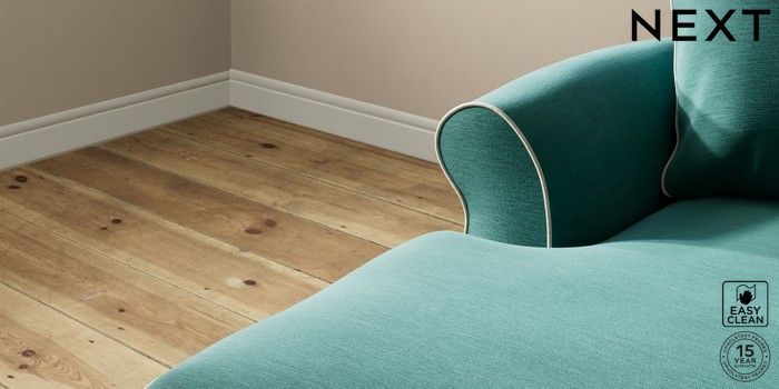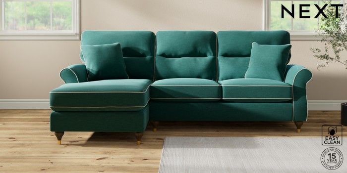 7.3.1 Buy Ashford Highback Medium Sofa Chaise - Left Hand Fine Chenille with Contrast Dark Juniper Green and Oyster Modern Turned Metal Cap - Mid from the Next UK online shop Click here to use our accessible website