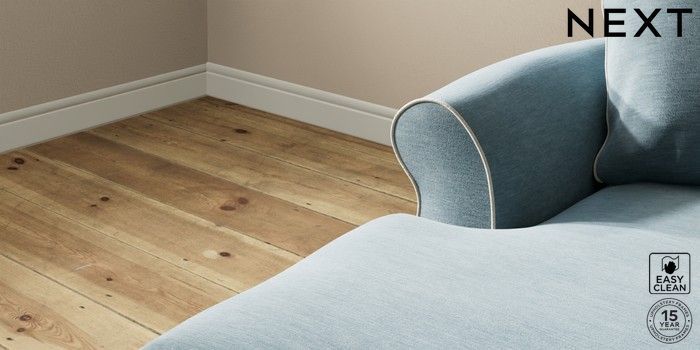 7.3.1 Buy Ashford Highback Medium Sofa Chaise - Left Hand Fine Chenille with Contrast Mid Blue and Oyster Low Turned - Dark from the Next UK online shop Click here to use our accessible website
