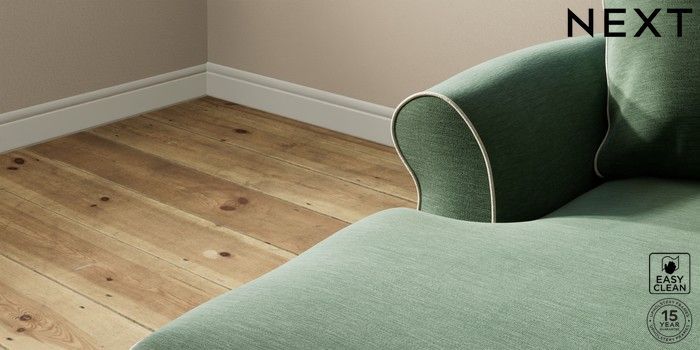 7.3.1 Buy Ashford Highback Medium Sofa Chaise - Left Hand Fine Chenille with Contrast Mid Khaki Green and Oyster Modern Turned Metal Cap - Mid from the Next UK online shop Click here to use our accessible website