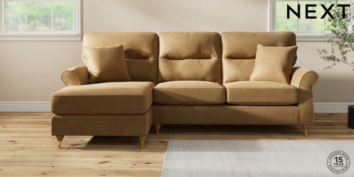 6.12.1 Buy Ashford Highback Medium Sofa Chaise - Left Hand Luxe Chenille Honey Yellow Castor - Light from the Next UK online shop Click here to use our accessible website