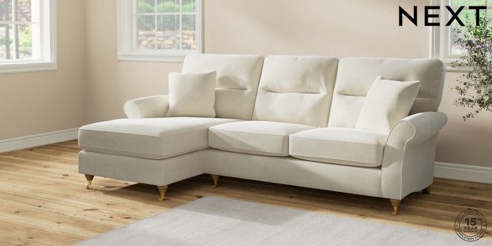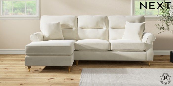 7.0.3 Buy Ashford Highback Medium Sofa Chaise - Left Hand Luxe Chenille Oyster Castor - Light from the Next UK online shop Click here to use our accessible website