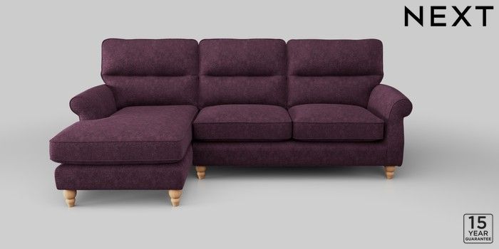 6.12.1 Buy Ashford Highback Medium Sofa Chaise - Left Hand Plush Chenille Dark Plum Purple Low Turned - Light from the Next UK online shop Click here to use our accessible website