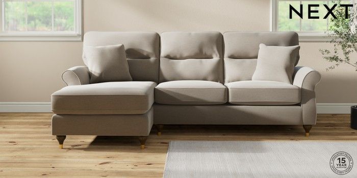 6.12.1 Buy Ashford Highback Medium Sofa Chaise - Left Hand Ripple Chenille Light Natural Modern Turned Metal Cap - Mid from the Next UK online shop Click here to use our accessible website