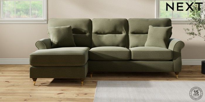 6.12.1 Buy Ashford Highback Medium Sofa Chaise - Left Hand Ripple Chenille Mid Moss Green Castor - Mid from the Next UK online shop Click here to use our accessible website