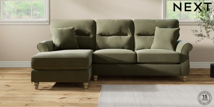 6.12.1 Buy Ashford Highback Medium Sofa Chaise - Left Hand Ripple Chenille Mid Moss Green Low Turned - Light from the Next UK online shop Click here to use our accessible website