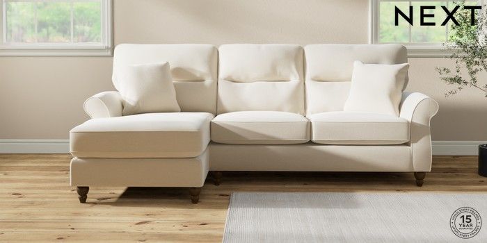 6.12.1 Buy Ashford Highback Medium Sofa Chaise - Left Hand Ripple Chenille Oyster Low Turned - Mid from the Next UK online shop Click here to use our accessible website