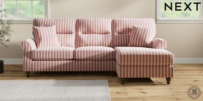 7.3.1 Buy Ashford Highback Medium Sofa Chaise - Right Hand Bold Chenille Stripe Dark Pink Low Turned - Mid from the Next UK online shop