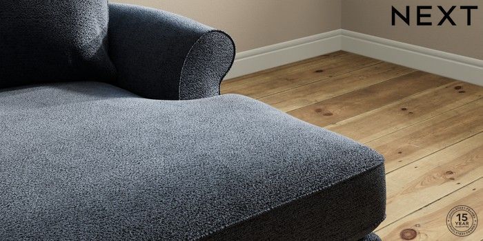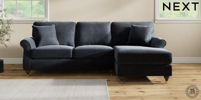 6.12.1 Buy Ashford Highback Medium Sofa Chaise - Right Hand Boucle Chenille Dark Slate Blue Modern Turned Metal Cap - Mid from the Next UK online shop Click here to use our accessible website
