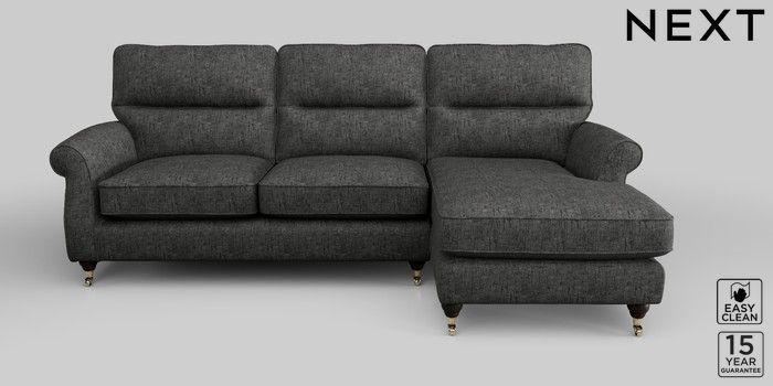 6.12.1 Buy Ashford Highback Medium Sofa Chaise - Right Hand Boucle Weave Easy Clean Charcoal Grey Castor - Dark from the Next UK online shop Click here to use our accessible website
