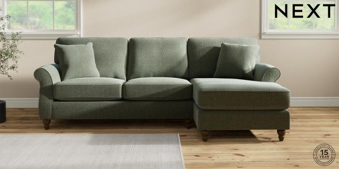 6.12.1 Buy Ashford Highback Medium Sofa Chaise - Right Hand Luxe Chenille Mink Brown Low Turned - Mid from the Next UK online shop Click here to use our accessible website