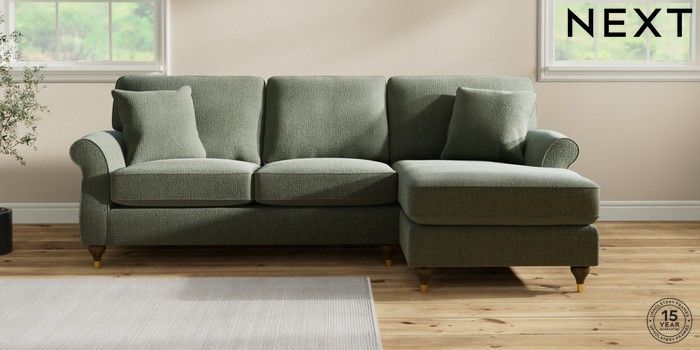 6.12.1 Buy Ashford Highback Medium Sofa Chaise - Right Hand Chunky Boucle Easy Clean Light Grey Modern Turned Metal Cap - Mid from the Next UK online shop Click here to use our accessible website