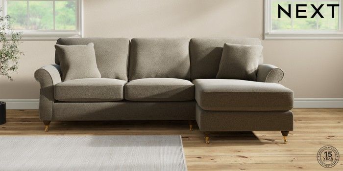 6.12.1 Buy Ashford Highback Medium Sofa Chaise - Right Hand Chunky Marl Light Olive Green Castor - Mid from the Next UK online shop Click here to use our accessible website