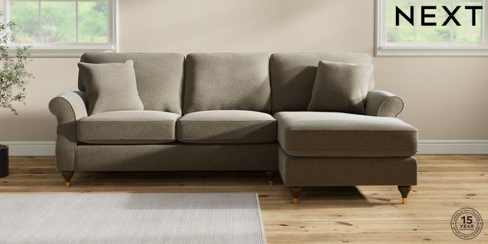 6.12.1 Buy Ashford Highback Medium Sofa Chaise - Right Hand Chunky Marl Light Olive Green Modern Turned Metal Cap - Mid from the Next UK online shop Click here to use our accessible website