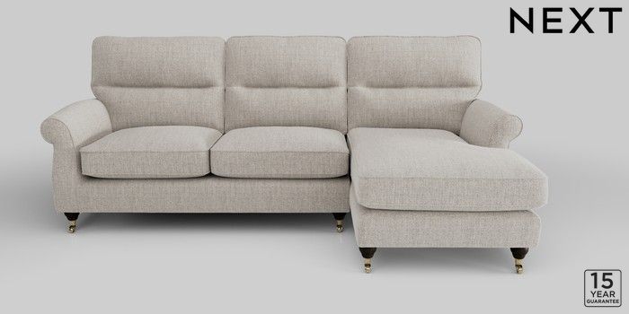 6.12.1 Buy Ashford Highback Medium Sofa Chaise - Right Hand Chunky Weave Dove Grey Castor - Dark from the Next UK online shop Click here to use our accessible website