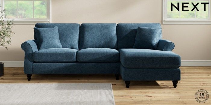 6.12.1 Buy Ashford Highback Medium Sofa Chaise - Right Hand Cotswold Chenille Dark Blue Low Turned - Dark from the Next UK online shop Click here to use our accessible website