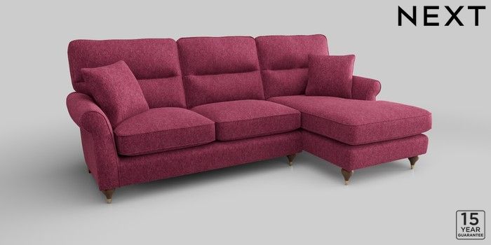 6.12.1 Buy Ashford Highback Medium Sofa Chaise - Right Hand Cotswold Chenille Dark Raspberry Pink Modern Turned Metal Cap - Mid from the Next UK online shop Click here to use our accessible website