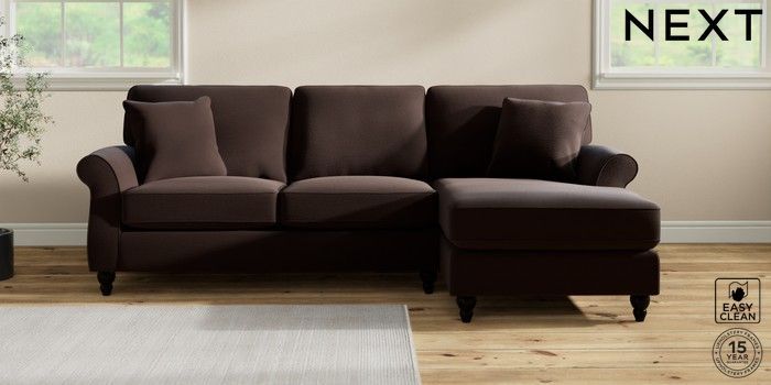 6.12.1 Buy Ashford Highback Medium Sofa Chaise - Right Hand Fine Chenille Easy Clean Chocolate Brown Low Turned - Dark from the Next UK online shop Click here to use our accessible website