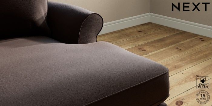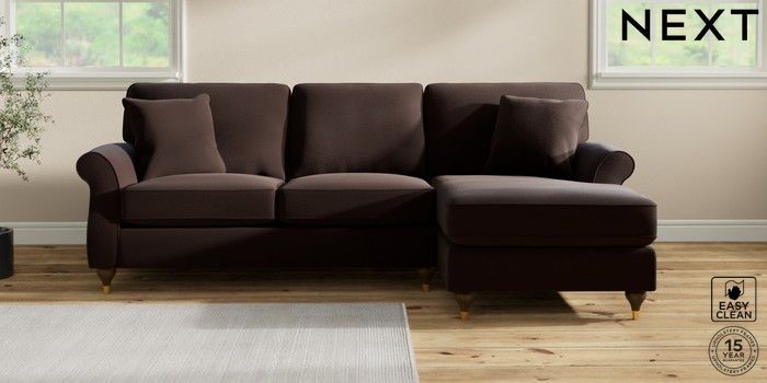 6.12.1 Buy Ashford Highback Medium Sofa Chaise - Right Hand Fine Chenille Easy Clean Chocolate Brown Modern Turned Metal Cap - Mid from the Next UK online shop Click here to use our accessible website